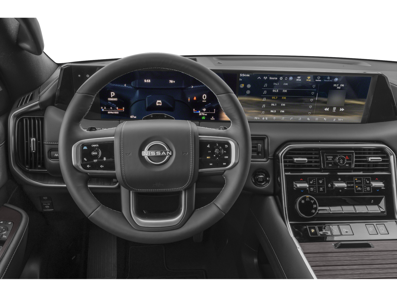 12 Speakers, 18x7.0 Polished/Painted Alloy wheels, 3rd row seats: split-bench, 4-Wheel Disc Brakes, ABS brakes, Adaptive suspension, Air Conditioning, AM/FM radio: SiriusXM, Anti-whiplash front head restraints, Auto High-beam Headlights, Auto tilt-away steering wheel, Auto-dimming door mirrors, Auto-dimming Rear-View mirror, Auto-leveling suspension, Automatic temperature control, Brake assist, Bumpers: body-color, Carpeted Floor Mats - Captain Chairs, Climate Controlled Heated & Ventilated Front Seats, Convenience Package, Delay-off headlights, Driver door bin, Driver vanity mirror, Dual front impact airbags, Dual front side impact airbags, Electronic Stability Control, Emergency communication system: NissanConnect Services, Four wheel independent suspension, Front anti-roll bar, Front Bucket Seats, Front Center Armrest, Front dual zone A/C, Front fog lights, Front reading lights, Fully automatic headlights, Garage door transmitter: myQ Connected Garage, Genuine wood dashboard insert, Heads-Up Display, Heated door mirrors, Heated front seats, Heated rear seats, Heated steering wheel, HVAC memory, Illuminated entry, Illuminated Kick Plates, Knee airbag, Leather steering wheel, Low tire pressure warning, Memory seat, Navigation System, Occupant sensing airbag, Outside temperature display, Overhead airbag, Overhead console, Panic alarm, Panoramic Headliner Illumination, Passenger door bin, Passenger vanity mirror, Power door mirrors, Power driver seat, Power Liftgate, Power moonroof, Power passenger seat, Power steering, Power windows, ProPILOT Assist 2.1 (PLAT RESERVE Grade), Quilted Leather Seat Trim, Radio: NissanConnect w/SiriusXM 360L, Rain sensing wipers, Rear air conditioning, Rear anti-roll bar, Rear Bumper Protector, Rear reading lights, Rear window defroster, Rear window wiper, Reclining 3rd row seat, Remote keyless entry, Roof Rail Cross Bars, Security system, Speed control, Speed-sensing steering, Speed-Sensitive Wipers, Splash Guards, Split folding rear seat, Spoiler, Steering wheel memory, Steering wheel mounted audio controls, Tachometer, Telescoping steering wheel, Tilt steering wheel, Traction control, Trip computer, Turn signal indicator mirrors, USB Charging Cables, Variably intermittent wipers, Ventilated front seats, Voltmeter, Wheels: 22 Painted Alloy.