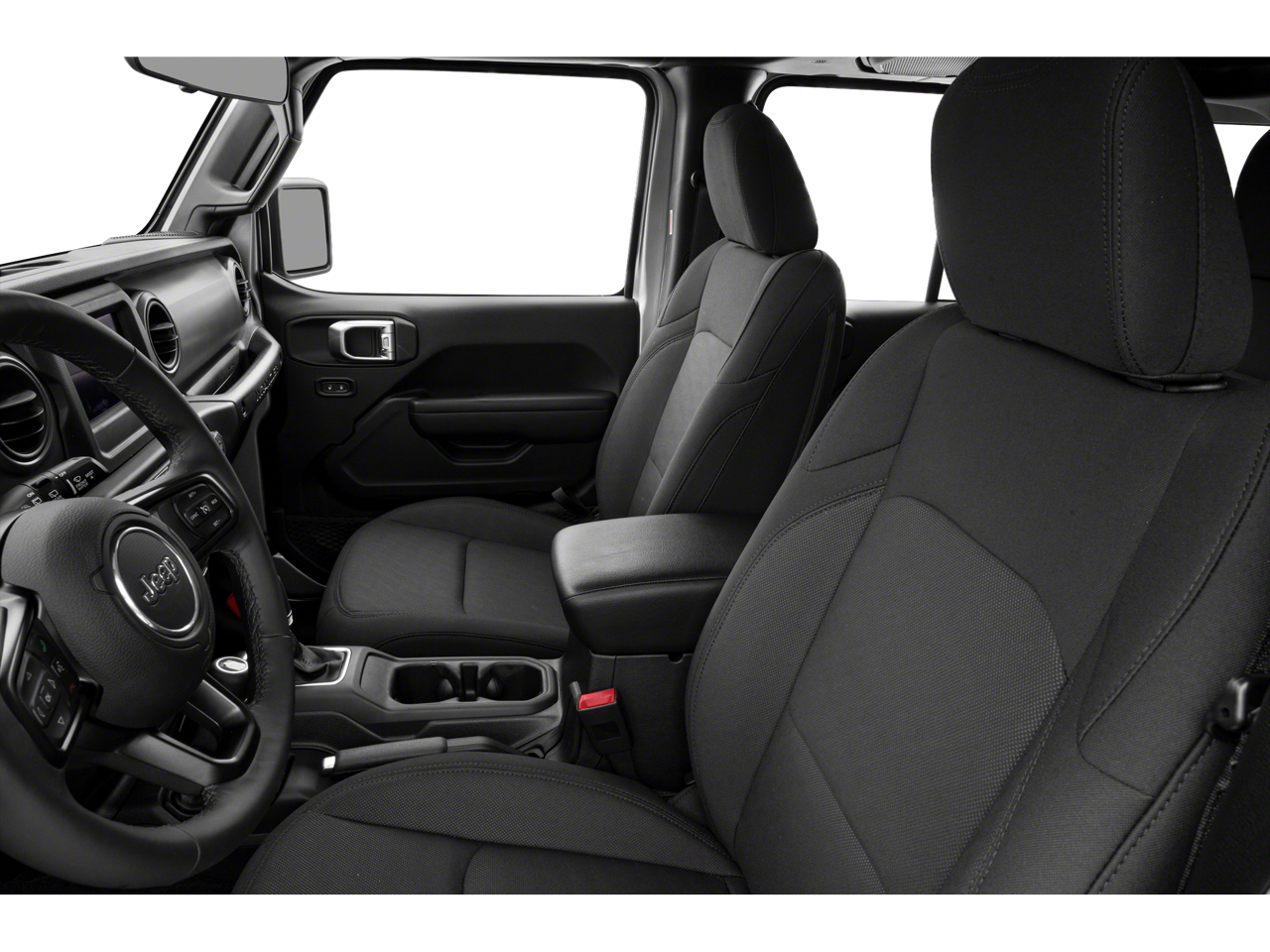 Boasting a spacious and versatile interior, the Wrangler Unlimited Sport offers ample room for passengers and cargo. The split-folding rear seat provides flexibility, while the front bucket seats and center armrest with storage ensure exceptional comfort. The Cloth Low-Back Bucket Seats add a touch of style and sophistication to the cabin.