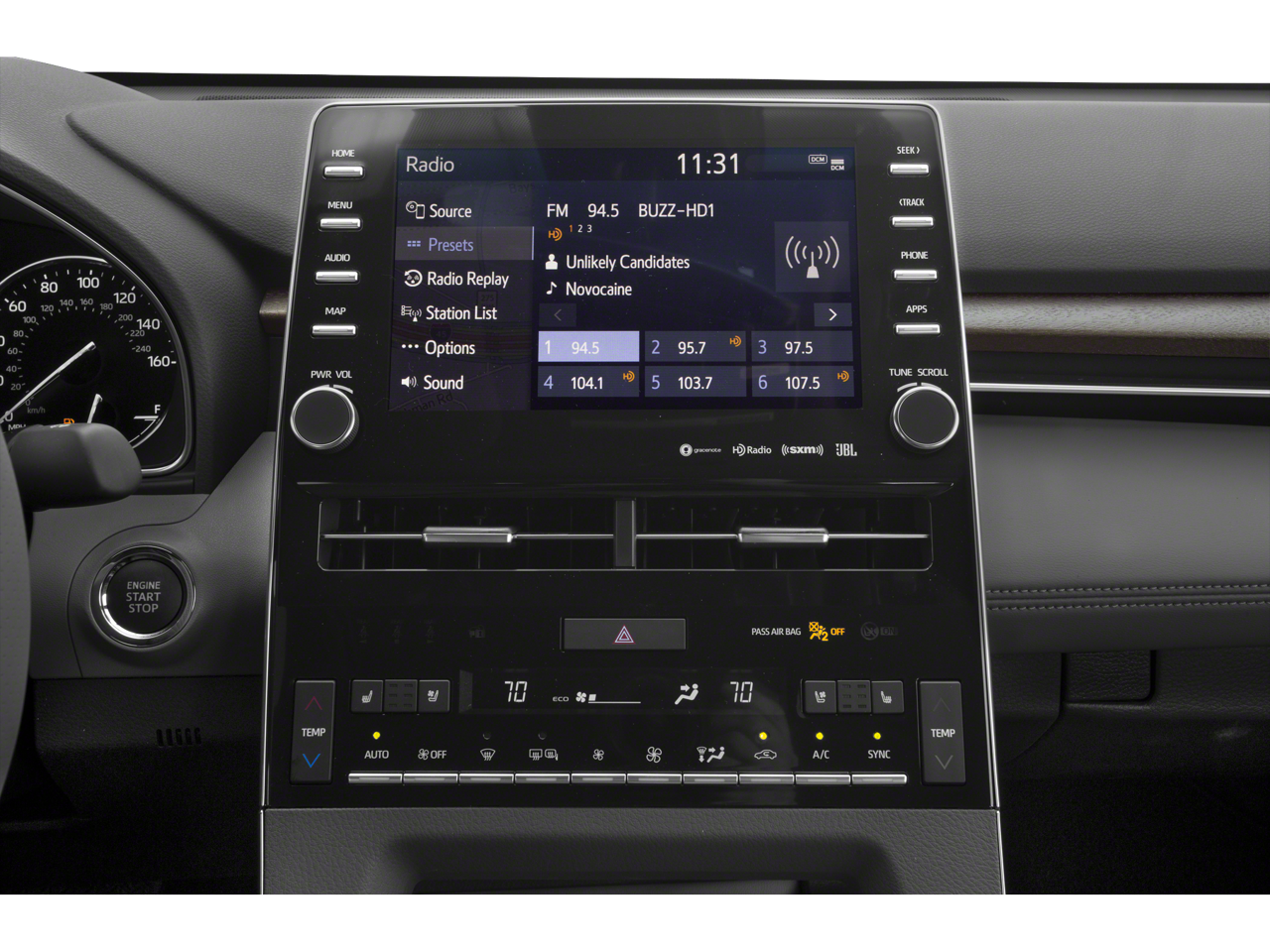 - Radio: Entune 3.0 JBL Audio System w/Navigation -inc: 14 speakers including subwoofer and 1200-watt amplifier, 9"touch screen, audio jack, USB 2.0 port w/iPod connectivity and control, Dynamic navigation, Dynamic POI search and Dynamic voice recognition w/3-year trial, Bluetooth® hands-free phone capability and music streaming, Apple CarPlay, Siri Eyes Free, HD Radio, Entune App Suite and SiriusXM satellite radio w/3-month SiriusXM All Access trial