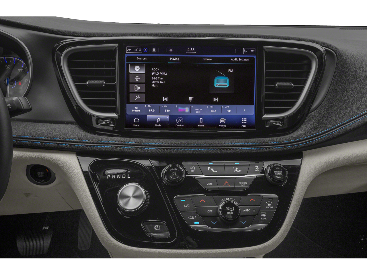 Step inside and discover the unparalleled spaciousness and flexibility of the Pacifica, with its split-folding third-row seats and ample cargo capacity. Personalize your comfort with dual-zone automatic climate control, while the premium audio system delivers an immersive listening experience.