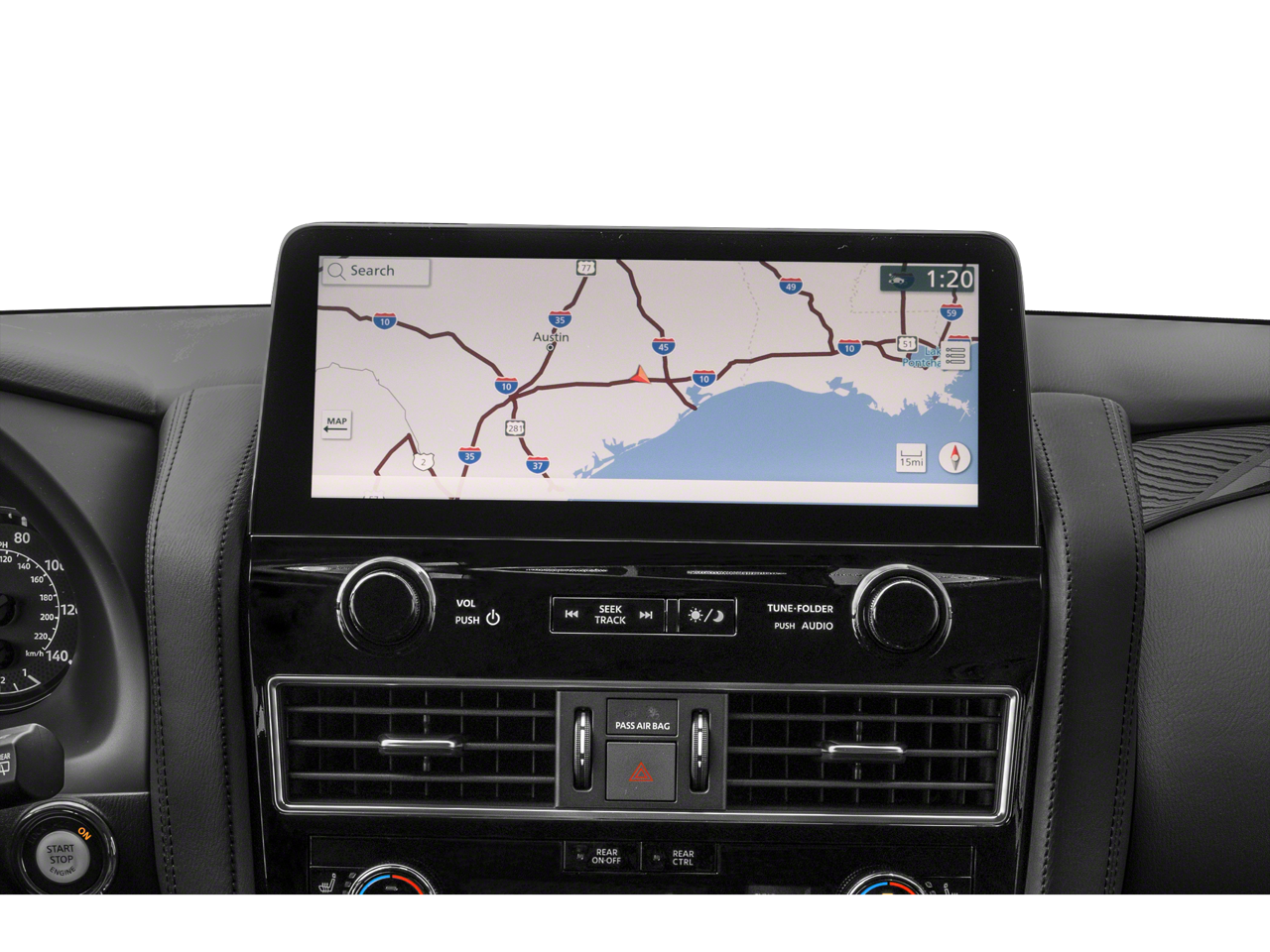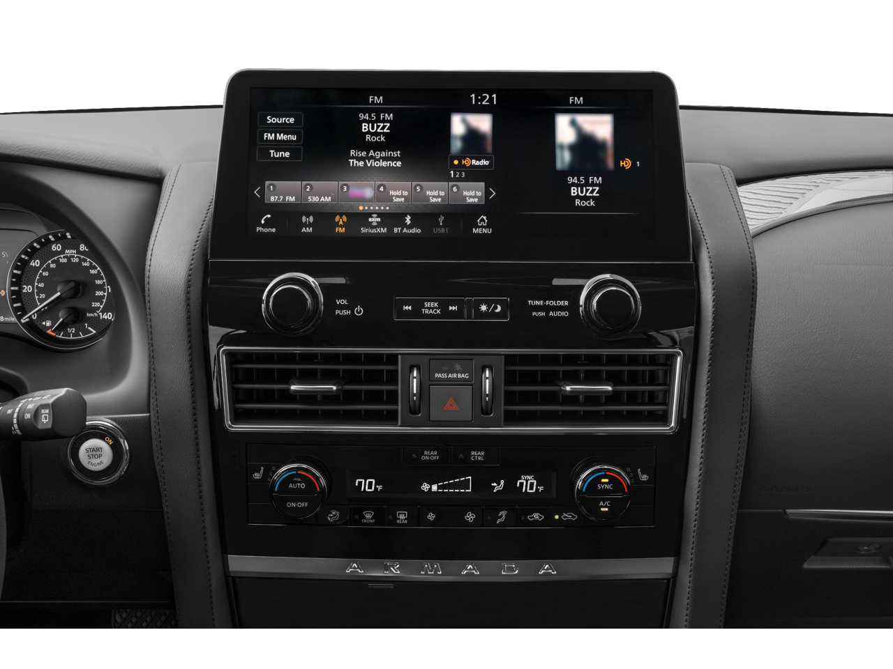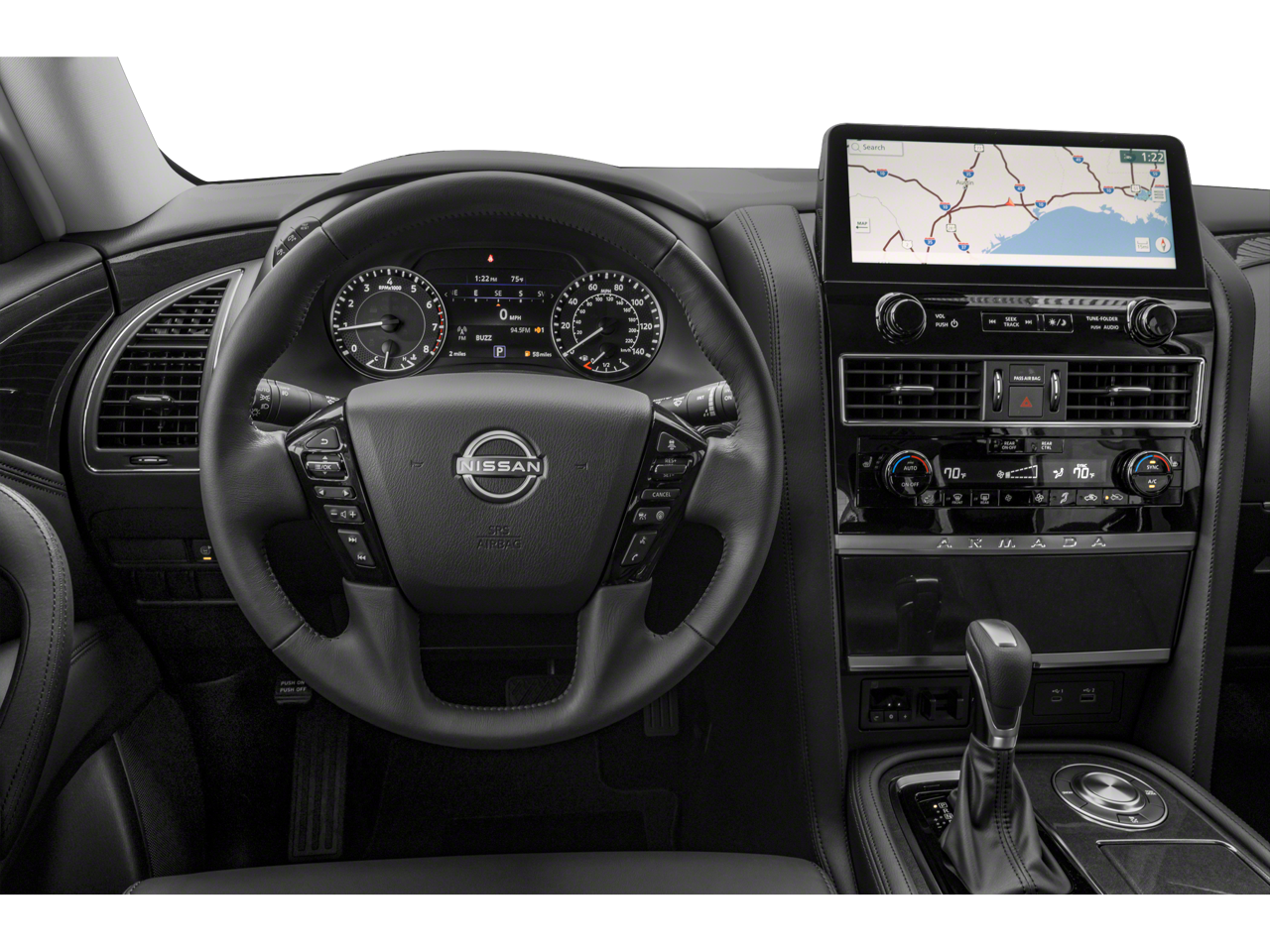 Stepping inside, you'll be surrounded by a wealth of premium features that elevate your driving experience. The Armada SV offers a host of advanced technologies, including a state-of-the-art navigation system, a premium audio system, and NissanConnect services for seamless connectivity.